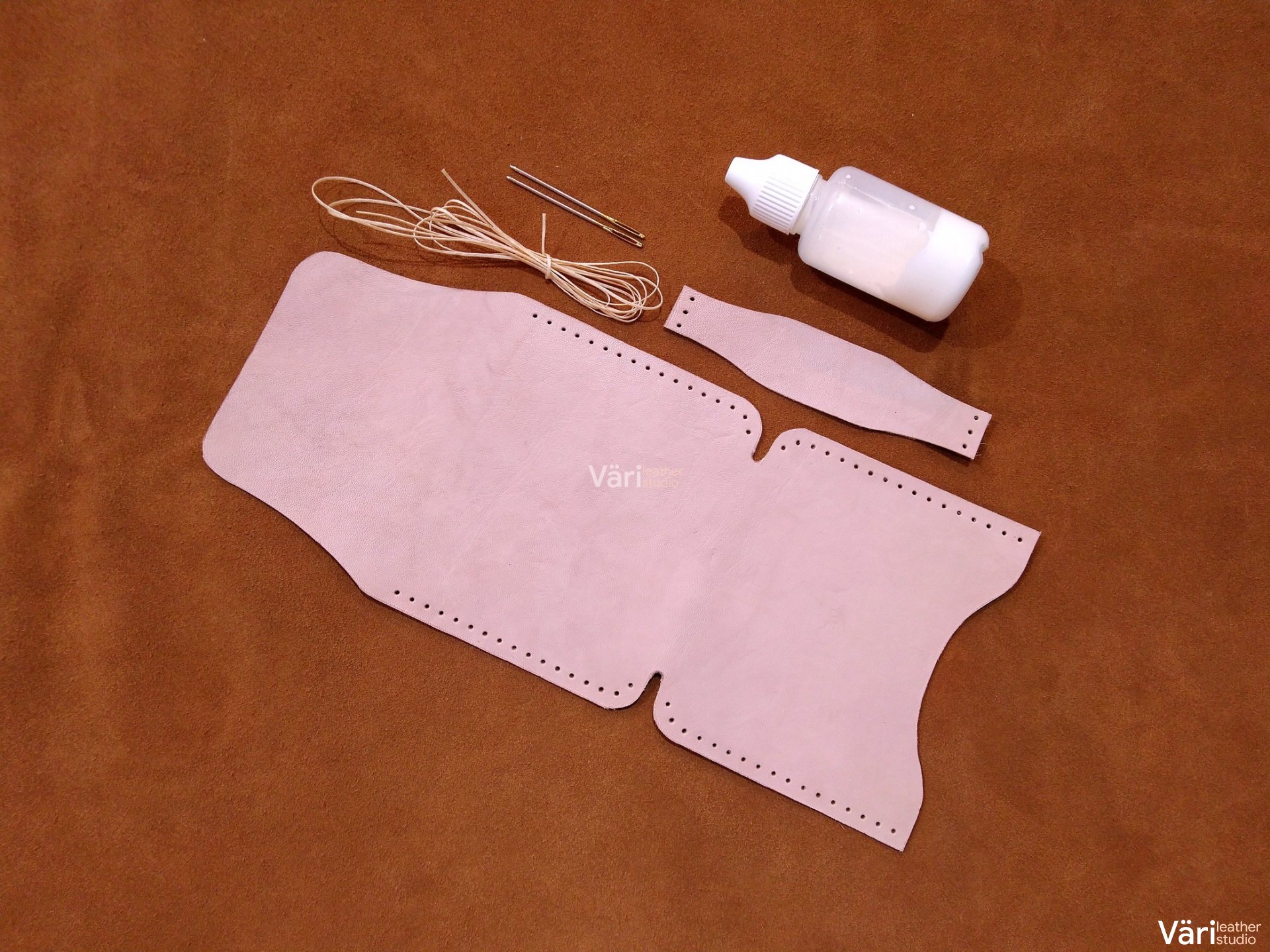 Bahan dari bahan kulit sapi asli samak nabati, dipotong secara manual dan sudah dilubangi dengan jarak jahitan 5mm. Potongan kulit ini dapat anda pesan secara custom mulai dari desain, warna, atau jarak jahitan. Cocok untuk keperluan pengajaran atau produk setengah jadi.
